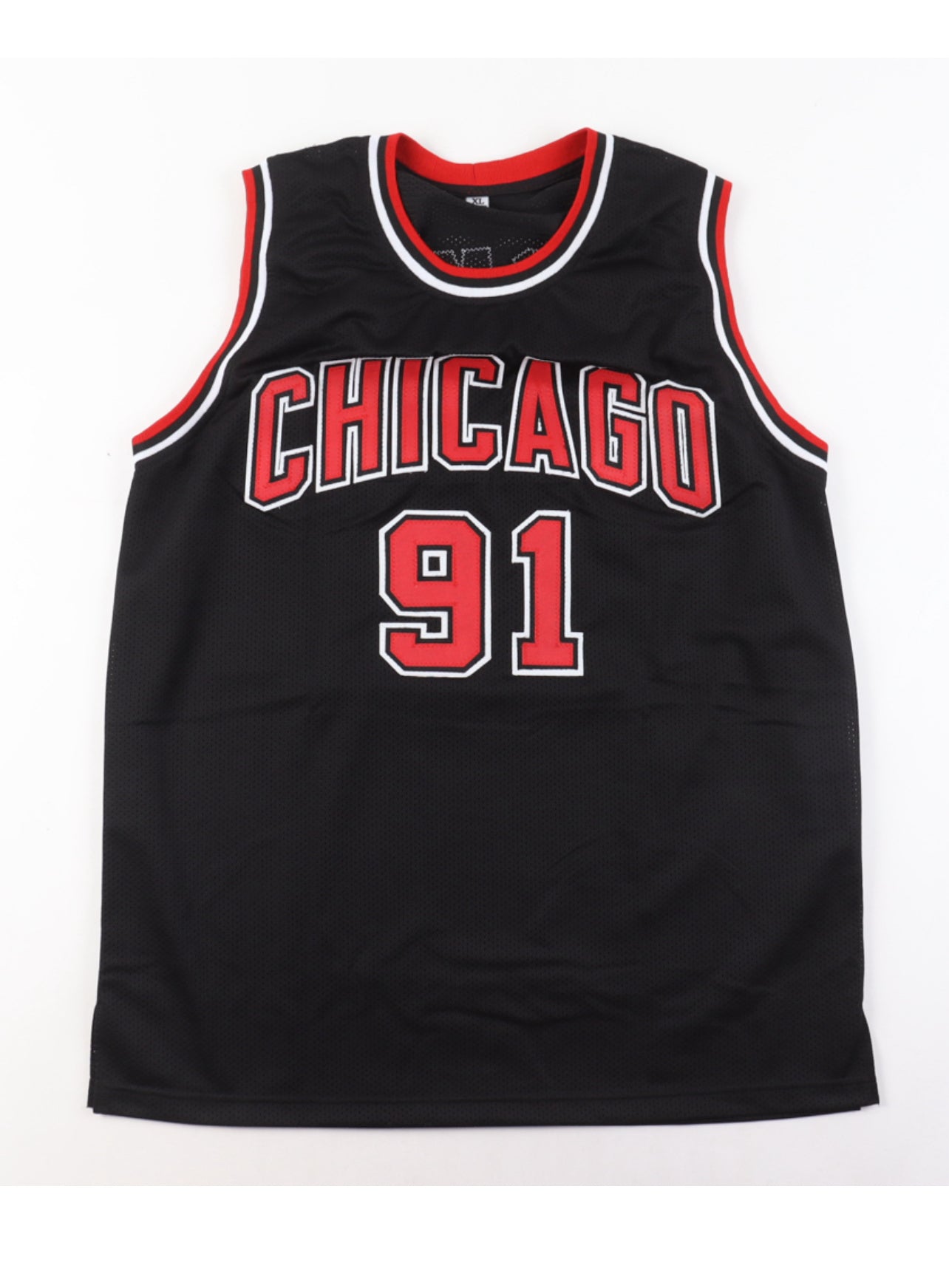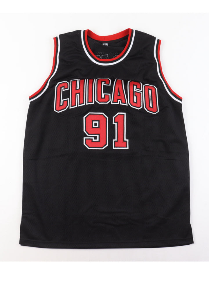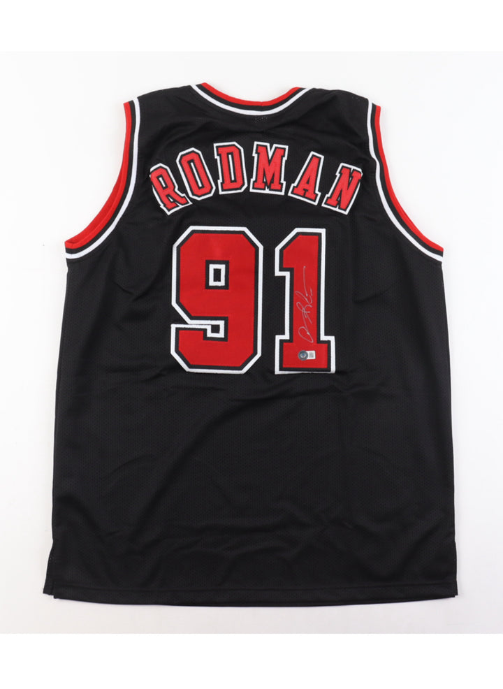 Custom jersey with everything sewn on, size XL. Has been hand-signed by Dennis Rodman (HOF).