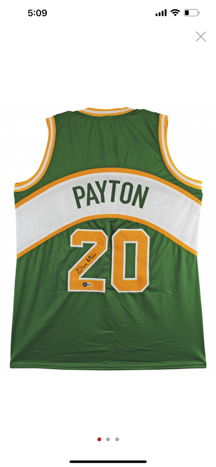 Custom jersey. Everything sewn on, size XL. Hand-signed by Gary Payton (HOF).