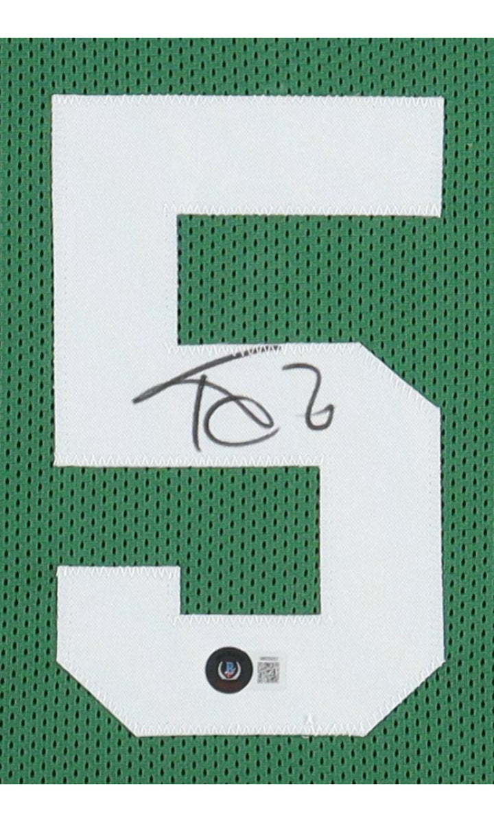 Custom framed jersey display measures 35" x 43' in size and features a jersey that has been hand-signed by Kevin Garnett (Boston Celtics, HOF).
