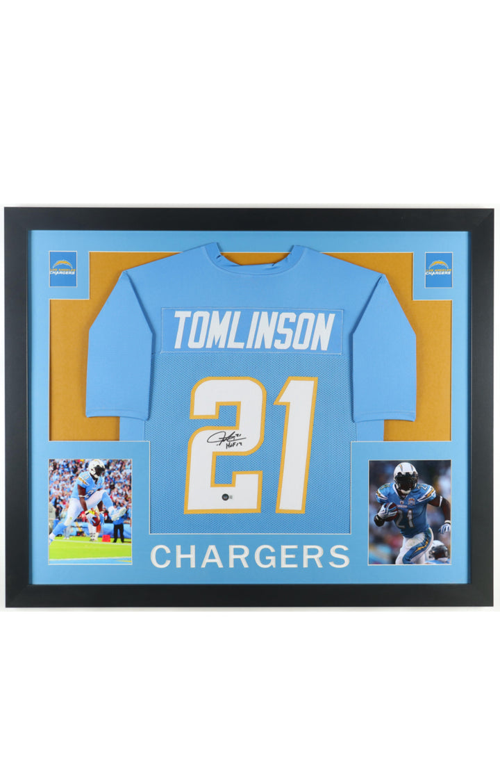 LaDainian Tomlinson Signed Custom Framed Jersey Display Inscribed "HOF 17" (Beckett)