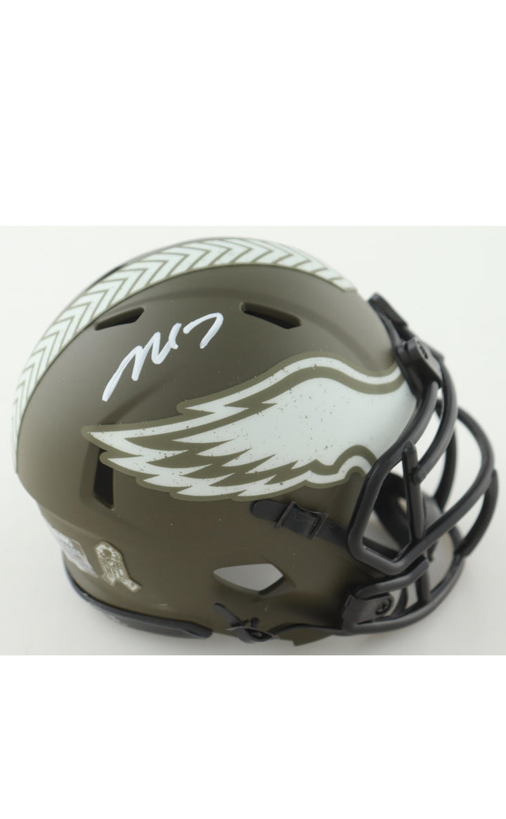 Riddell Philadelphia Eagles Salute to Service Alternate Speed mini helmet. Hand-signed by Michael Vick.